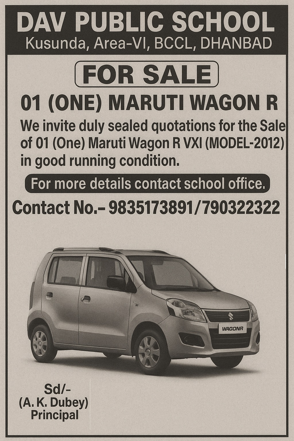 TENDER NOTIFICATION FOR WAGON CAR